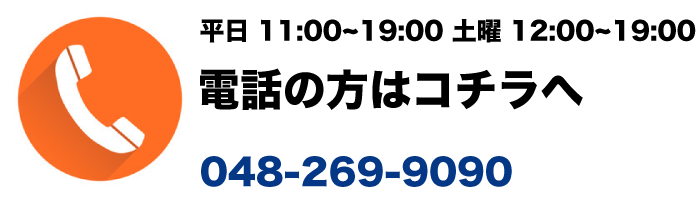 お問合せ時間:平日11:00-19:00 土曜12:00-19:00